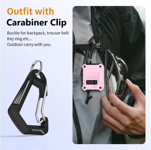 CARABINER CLIP: Attach the included clip to the side of the case. The carabiner is a versatile clip because you can attach to most anything: belt loop, backpack, strap, purse, keychain, etc.