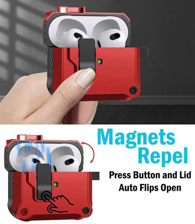 SECURE MAGNETIC LID: When you close the lid, you'll hear and feel the latch "click" secure. Enjoy peace of mind, knowing your Airpods Pro 3 are secure shut. Press the bottom button on the latch and your lid will spring open (as a result of same magnetic polarity). Such cool and useful technology that is convenient (and very satisfying to press).