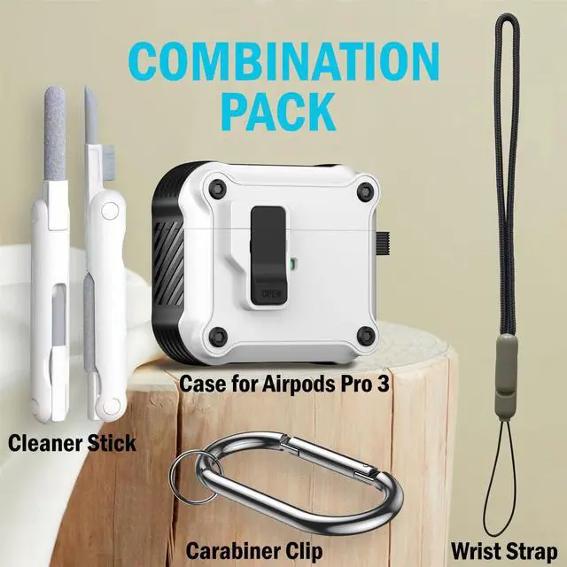 Protect and carry your "Airpods Pro 3" in style with this rugged and durable case! This combination kit is loaded with extras!