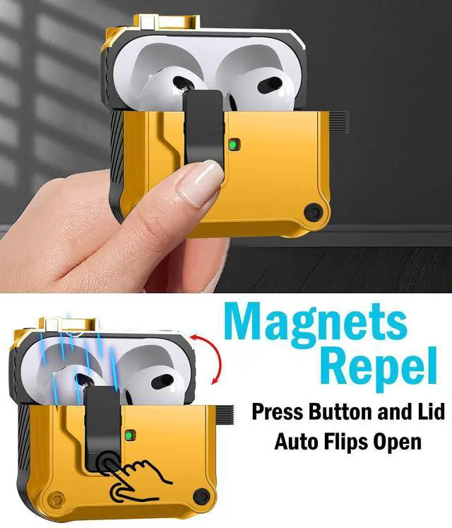 SECURE MAGNETIC LID: When you close the lid, you'll hear and feel the latch "click" secure. Enjoy peace of mind, knowing your Airpods Pro 3 are secure shut. Press the bottom button on the latch and your lid will spring open (as a result of same magnetic polarity). Such cool and useful technology that is convenient (and very satisfying to press).