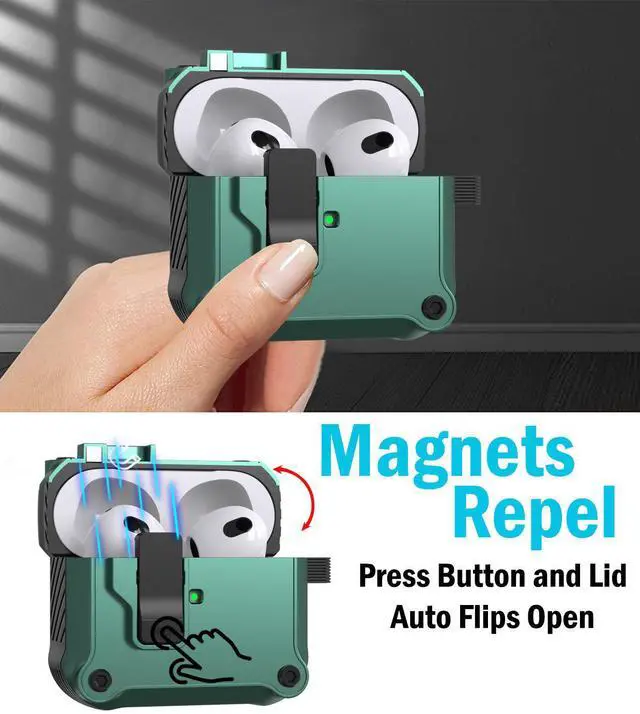SECURE MAGNETIC LID: When you close the lid, you'll hear and feel the latch "click" secure. Enjoy peace of mind, knowing your Airpods Pro 3 are secure shut. Press the bottom button on the latch and your lid will spring open (as a result of same magnetic polarity). Such cool and useful technology that is convenient (and very satisfying to press).