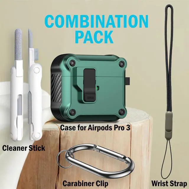 Protect and carry your "Airpods Pro 3" in style with this rugged and durable case! This combination kit is loaded with extras!