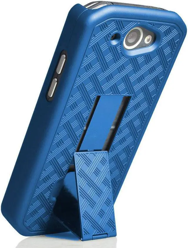 This slim cover is a hard shell that snaps on the back of the phone. The case is made of hard polycarbonate that has been treated with a rubberized spray powder coating for extra durability. Case also has ribbed weave pattern for enhanced tactile grip. Your phone is functional in the case with access to all buttons and ports.