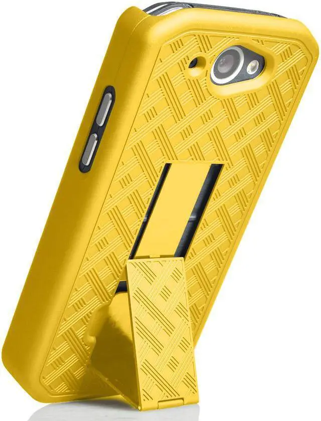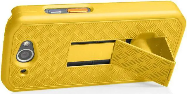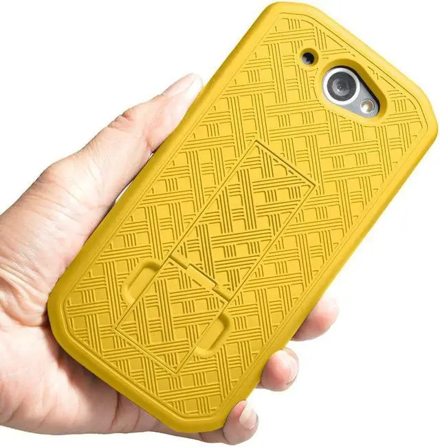 This slim cover is a hard shell that snaps on the back of the phone. The case is made of hard polycarbonate that has been treated with a rubberized spray powder coating for extra durability. Case also has ribbed weave pattern for enhanced tactile grip. Your phone is functional in the case with access to all buttons and ports.