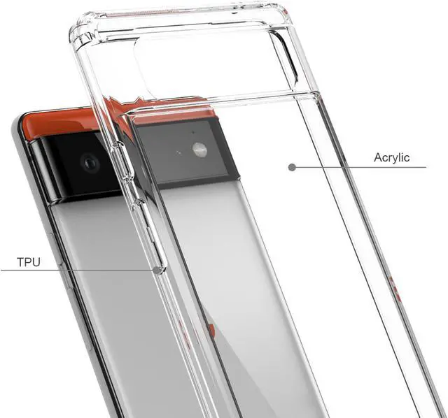The AquaFlex Hybrid case provides crystal clear protection for your "Google Pixel 6" phone. This transparent case offers enhanced grip and shock absorption with a slim design.