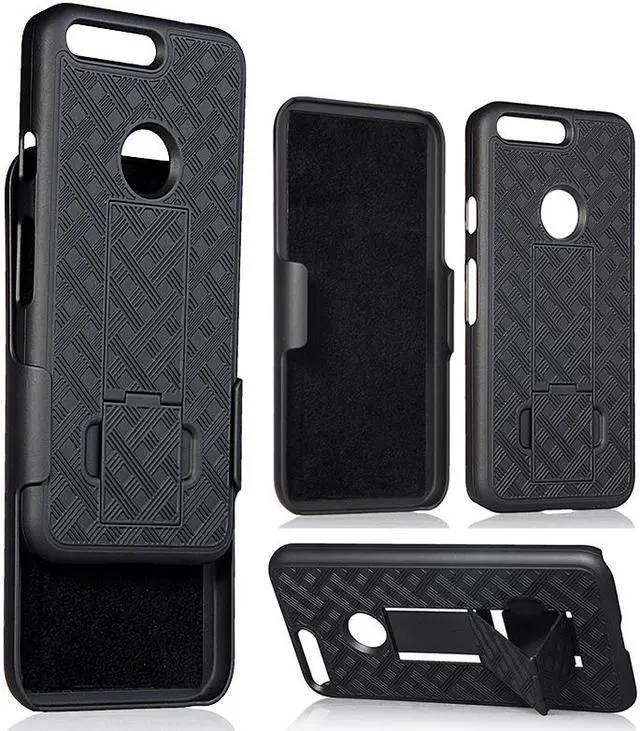 HOLSTER KICKSTAND: There is a hinge on the inside of the belt clip so you can prop open. This is handy for propping the clip on your table/desk.