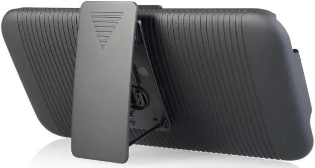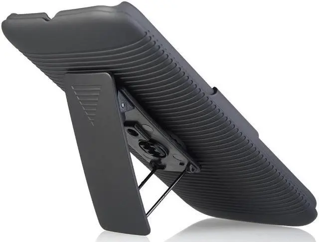 KICKSTAND: There is a hinge on the inside of the belt clip so you can prop open. This is great for standing the phone in horizontal position on your table or desk. Now you'll be able to prop your phone and watch movies hands-free.... also handy for those who use their phone as an alarm clock.