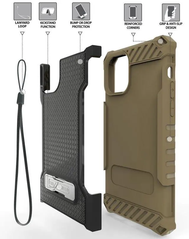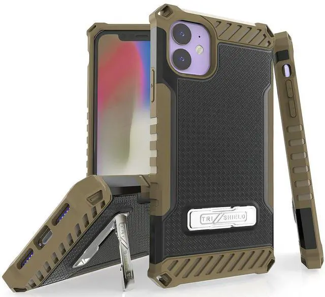 The Tri-Shield Case provides kickstand viewing, enhanced grip, unique style and Military-Grade drop protection.