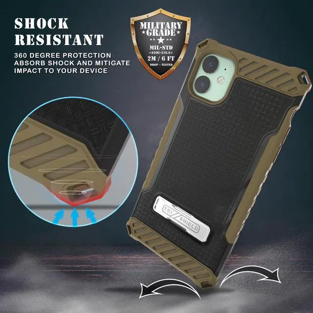 MILITARY GRADE PROTECTION: This rugged case is military tested to withstand those accidental drops. The inner layer is flexible TPU rubber material and the reinforced corners will provide shock absorption. Elevated lip makes your screen and camera recessed for added protection. The exterior hard shell provides impact resistance.