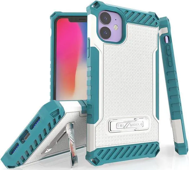 The Tri-Shield Case provides kickstand viewing, enhanced grip, unique style and Military-Grade drop protection.