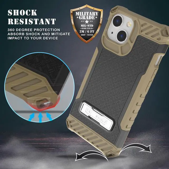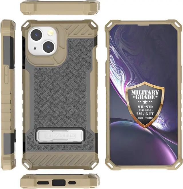 The Tri-Shield Case provides kickstand viewing, enhanced grip, unique style and Military-Grade drop protection.