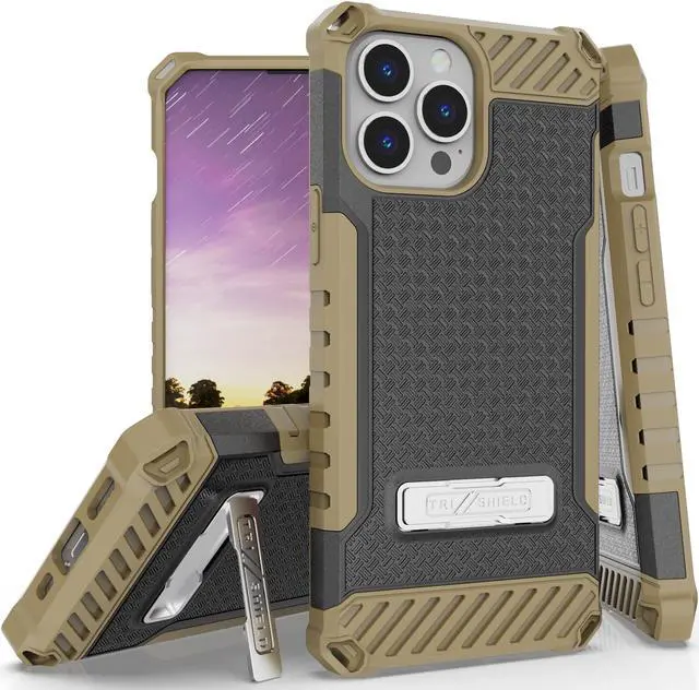 The Tri-Shield Case provides kickstand viewing, enhanced grip, unique style and Military-Grade drop protection.
