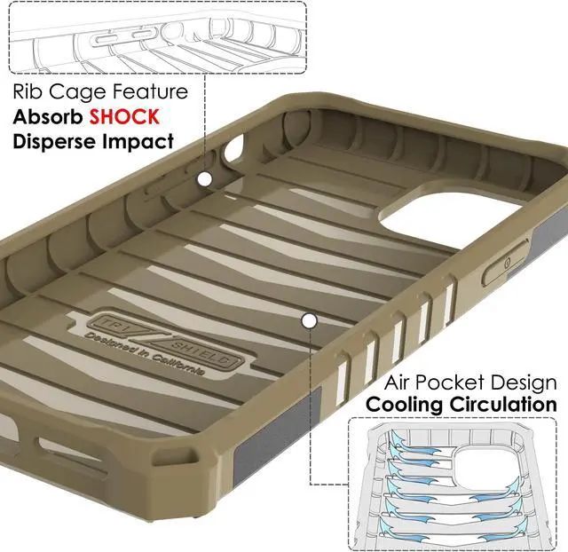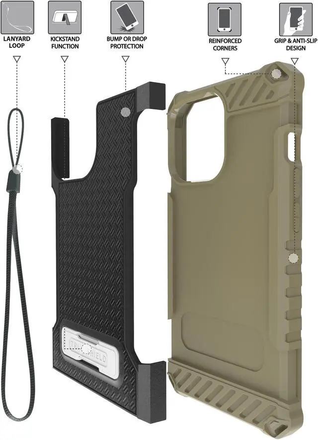MILITARY GRADE PROTECTION: This rugged case is military tested to withstand those accidental drops. The inner layer is flexible TPU rubber material and the reinforced corners will provide shock absorption. Elevated lip makes your screen and camera recessed for added protection. The exterior hard shell provides impact resistance.