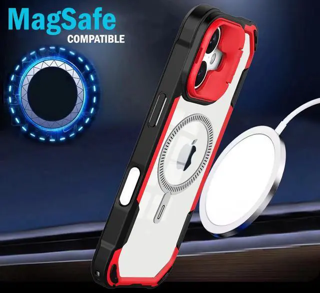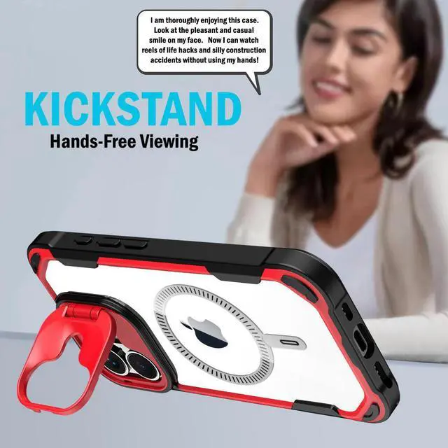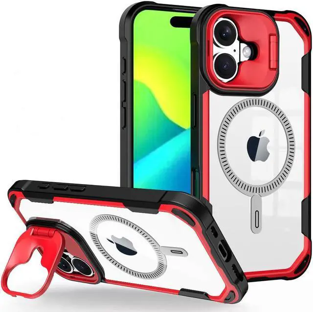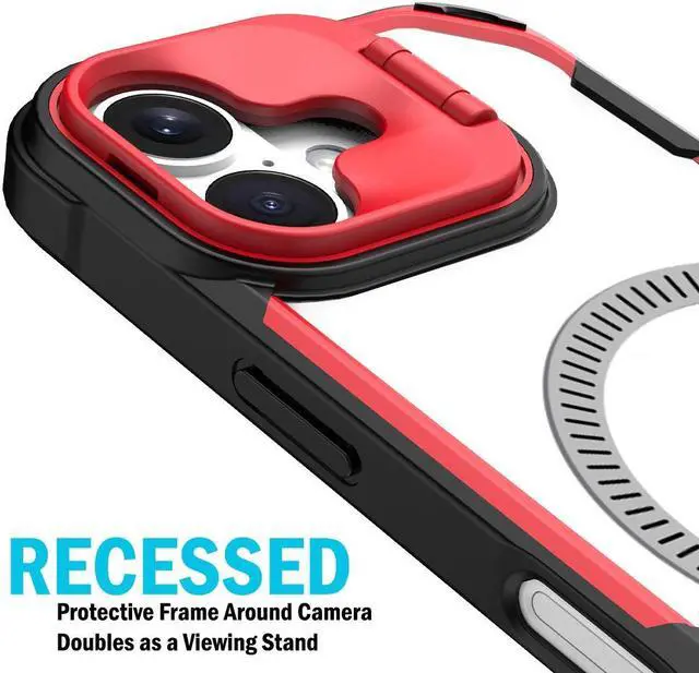 Camera Stand Clear Case for iPhone 16 - Compatible with MagSafe - Red