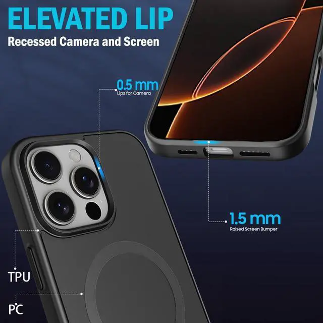 COMPATIBLE WITH MAGSAFE: Internal ring of N52 neodymium magnets makes this case compatible with MagSafe accessories such as MagSafe Chargers, MagSafe Mounts, MagSafe Wallets, etc. There are so many cool MagSafe accessories on the market, and now you'll be able to enjoy them all. You'll notice MagSafe accessories offer extra utility and efficiency that make your daily journey more convenient.