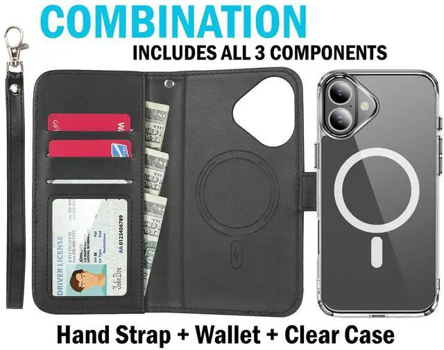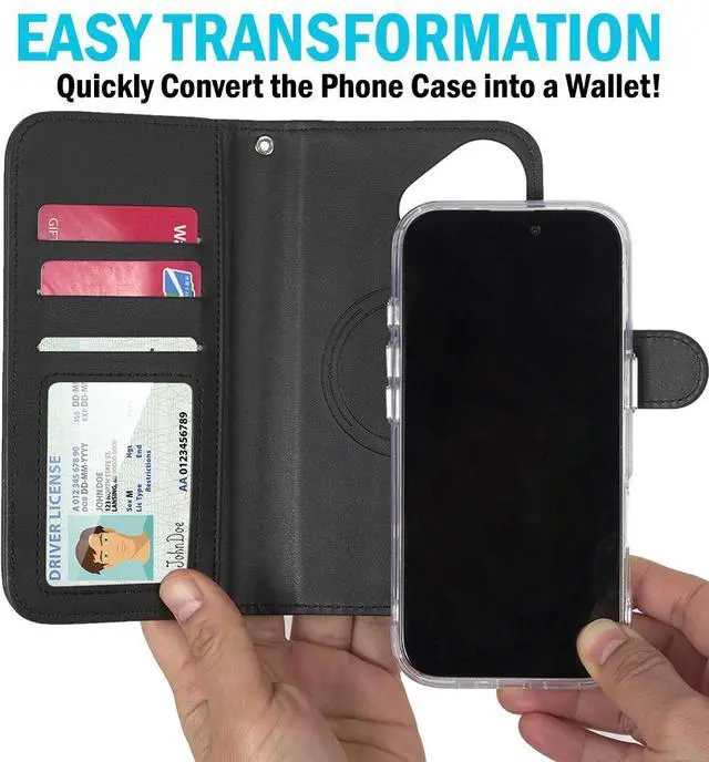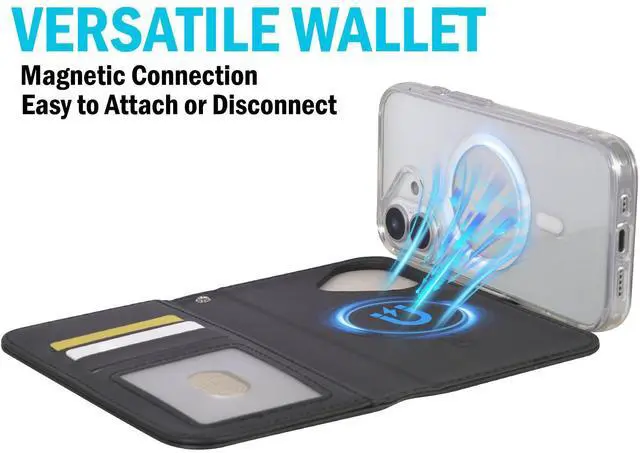 MAGNETIC WALLET: We've noticed traditional folio wallets can be a pain in the butt because your phone and wallet are always linked together. This problem has been solved via MagSafe magnetism! Now you'll have the freedom to use your iPhone independently OR use your iPhone encased in the wallet. The wallet magnetically connects to included case in the blink of an eye!