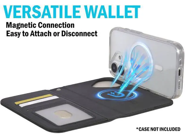 MAGNETIC WALLET: We've noticed traditional folio wallets can be a pain in the butt because your phone and wallet are always linked together. This problem has been solved via MagSafe magnetism! Now you'll have the freedom to use your iPhone independently OR use your iPhone encased in the wallet. Your case and this wallet will magnetically connect for quick convenience.