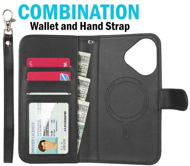 COMPATIBILITY: You receive the black magnetic wallet and strap. No case is included. Rather, this attaches to your existing case. You Can Use This Wallet if (1) Your Phone Model is iPhone 17 and (2) Your iPhone 17 Case is Compatible with MagSafe