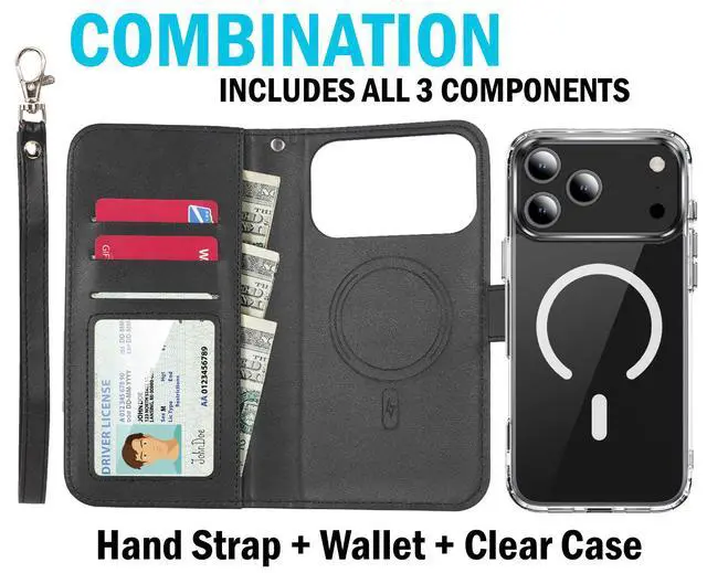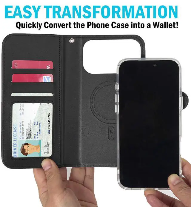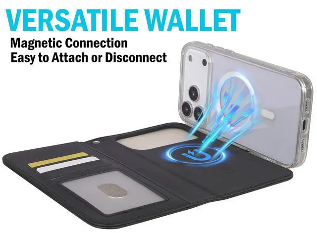 MAGNETIC WALLET: We've noticed traditional folio wallets can be a pain in the butt because your phone and wallet are always linked together. This problem has been solved via MagSafe magnetism! Now you'll have the freedom to use your iPhone independently OR use your iPhone encased in the wallet. The wallet magnetically connects to included case in the blink of an eye!