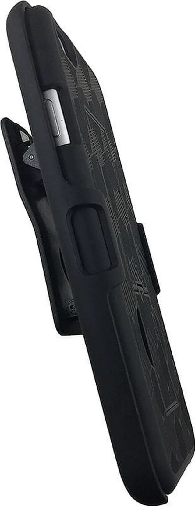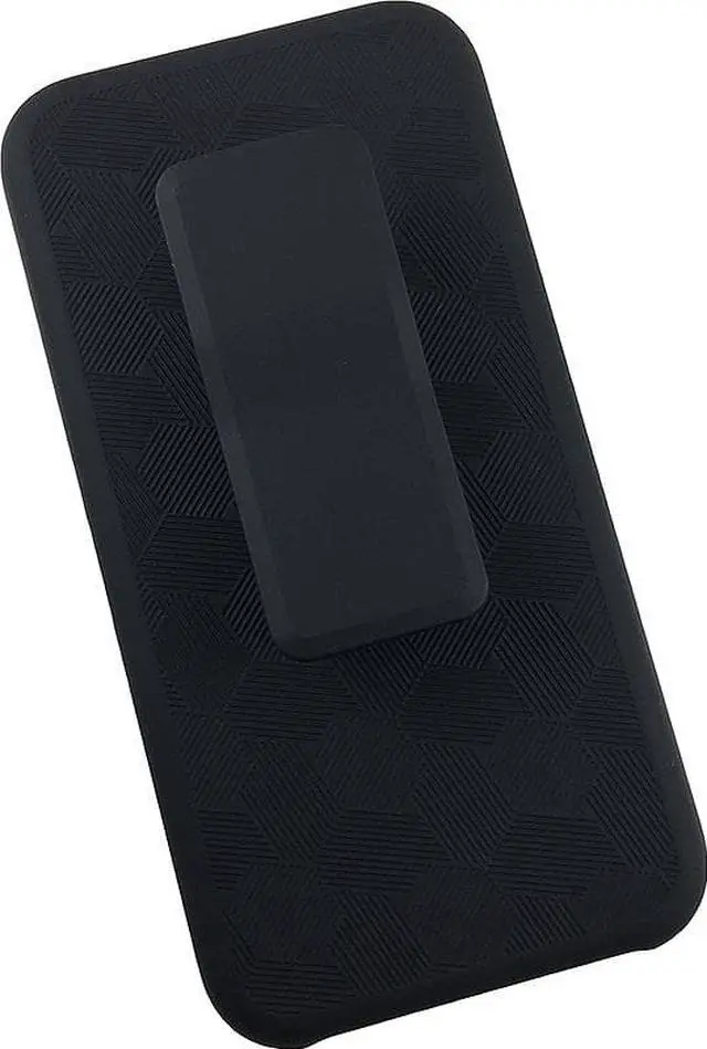 PHONE COVER: The cover is a black hard shell that snaps on the back of the phone. Your phone is fully functional in the case with cutouts to access all buttons and ports. The case is made of hard polycarbonate that has been treated with a rubberized powder coating for extra grip and durability. Case also has ribbed weave texture pattern for additional grip.