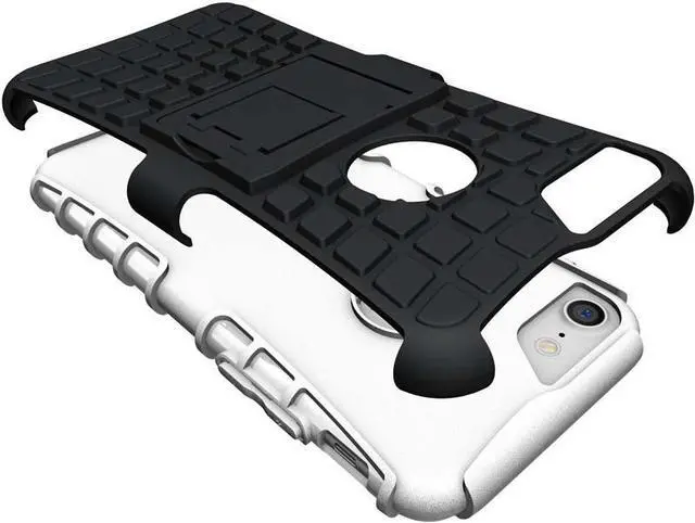 MATERIAL: This is a hybrid case that offers two layers of protection. First wrap the TPU skin around your phone. The TPU material is flexible and fits like a glove. Then the black rubberized hard shell will snap on the back of the skin. The hard shell extends to all four corners of the phone providing excellent impact protection from drops. Your touchscreen is recessed within the case for protection - will not scratch the surface when face-down on a table.