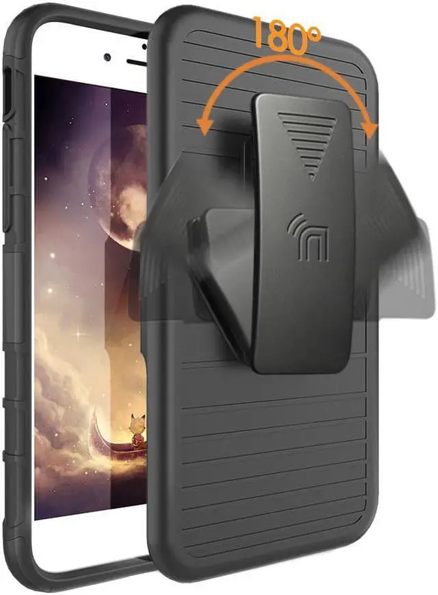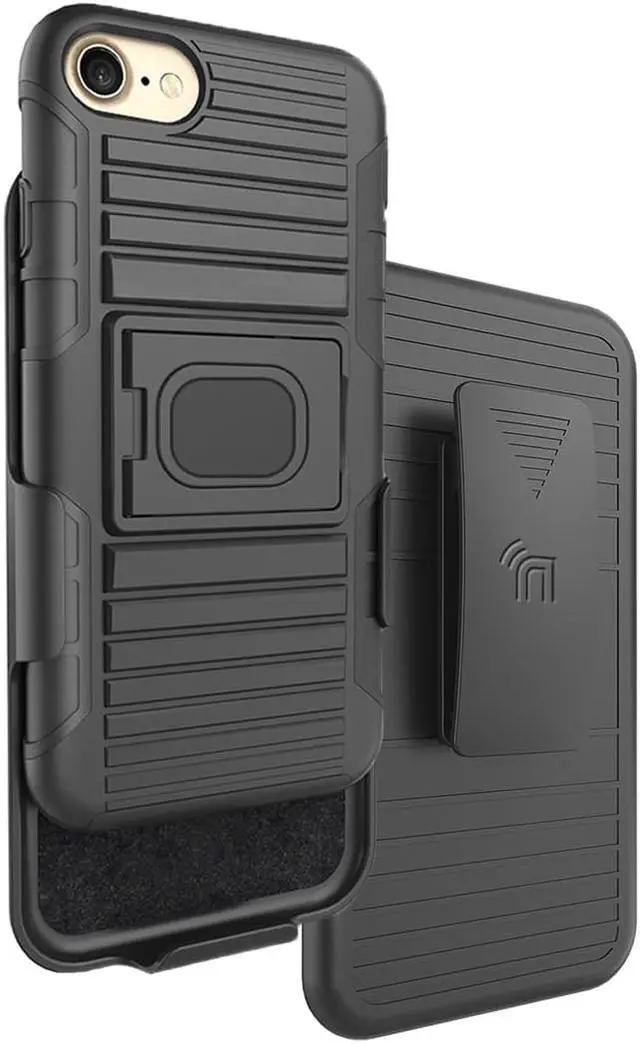 BELT CLIP HOLSTER: Industrial holster was custom made to fit this case. It is made of a hard polycarbonate and it was molded to fit the phone face-inward so your screen is concealed/protected. Belt clip will turn/lock in 13 different positions. Attach to your side and always have quick access to your phone. The holster also has a kickstand feature so you can prop on a table.
