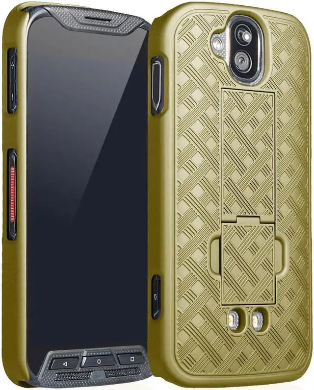 This slim cover is a hard shell that snaps on the back of the phone. Your phone is functional in the case with access to all buttons and ports.