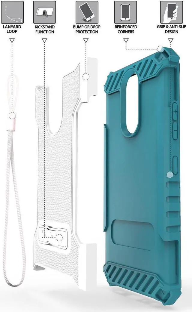 MILITARY GRADE PROTECTION: This rugged case is military tested to withstand those accidental drops. The inner layer is flexible TPU rubber material and the reinforced corners will provide shock absorption. Elevated lip makes your screen and camera recessed for added protection. The exterior hard shell provides impact resistance.