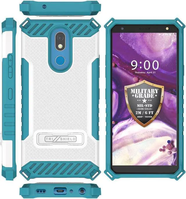The Tri-Shield Case provides kickstand viewing, enhanced grip, unique style and Military-Grade drop protection.