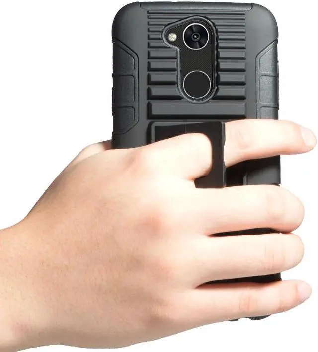 BELT CLIP HOLSTER: The industrial holster was custom made to fit this case face-inward. This design keeps your screen concealed and protected. Belt clip will turn/lock in 13 different positions. Attach to your side and always have quick access to your phone.