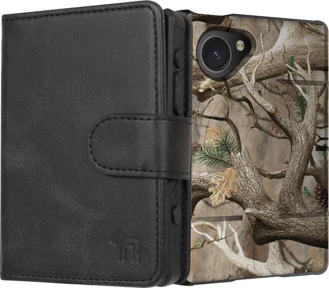 WALLET: The wallet magnetically connects to included case in the blink of an eye. The black leather wallet features three (3) storage compartments on the interior left side. The two RFID credit card slots will accommodate two cards in each slot. Behind the left panel youll see one full-length slot. Now you can carry your phone, credit cards, business cards, folded cash, etc, all in one case! Side magnetic flap will keep the case closed shut - no complicated snaps or buttons.