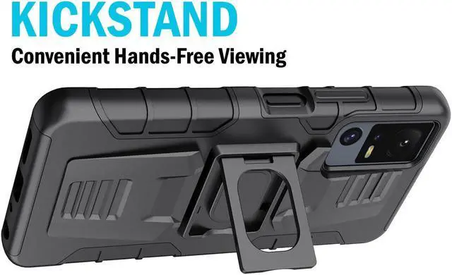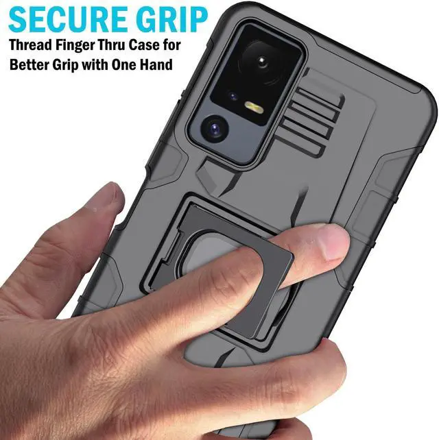 RING STAND: Back of the case features unique kickstand that can also be used as a finger-grip. Thread your finger though the hole and now you'll be able to handle the phone better with one hand. No more drops! You'll have a secure grip and now you'll be able to reach all edges of the touchscreen better one-handed. The kickstand allows you to prop your phone in horizontal position on a table or desk. This is ideal for watching videos.