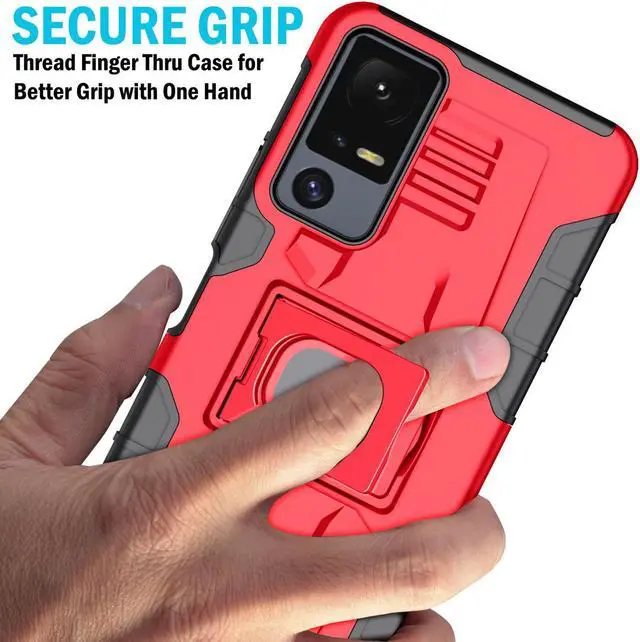 RING STAND: Back of the case features unique kickstand that can also be used as a finger-grip. Thread your finger though the hole and now you'll be able to handle the phone better with one hand. No more drops! You'll have a secure grip and now you'll be able to reach all edges of the touchscreen better one-handed. The kickstand allows you to prop your phone in horizontal position on a table or desk. This is ideal for watching videos.