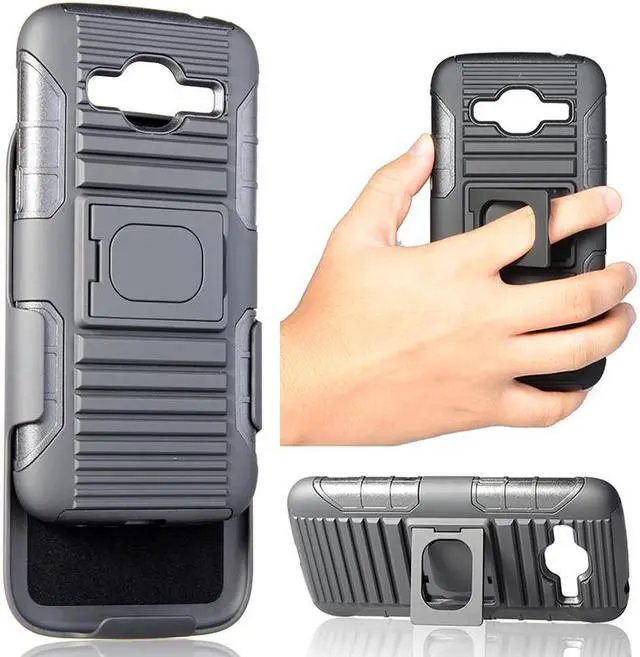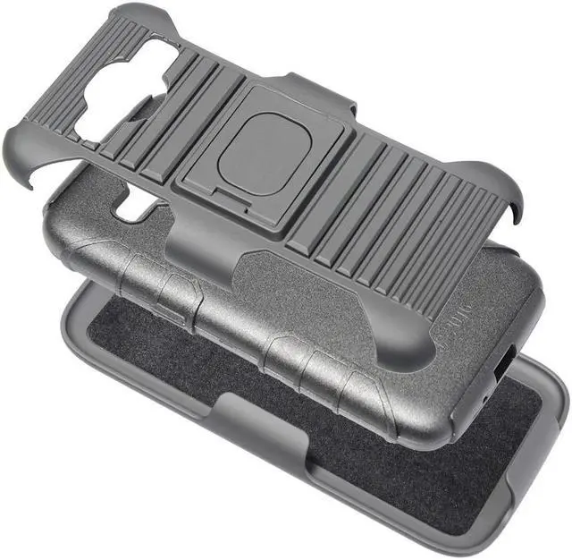 The Armor Ring Combo is a tough and rugged case that comes with matching belt clip. This case provides excellent protection, enhanced grip, kickstand viewing and custom holster.