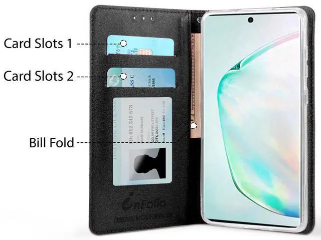 STORAGE: This case features three (3) storage compartments on the interior left side. The two credit card slots will accommodate multiple cards in each slot. Behind the left panel youll see one full-length slot. Now you can carry your phone, credit cards, business cards, etc, all in one case!