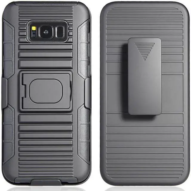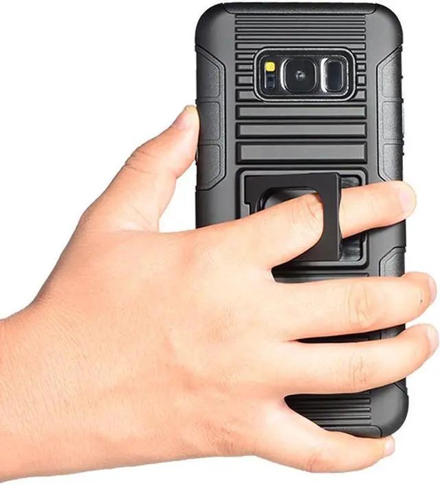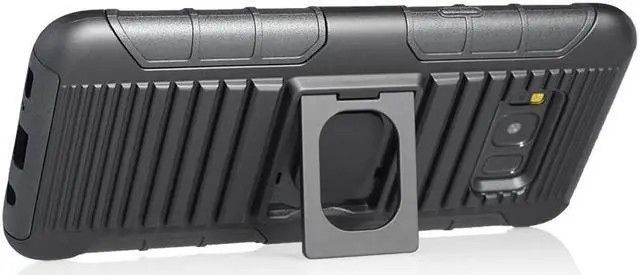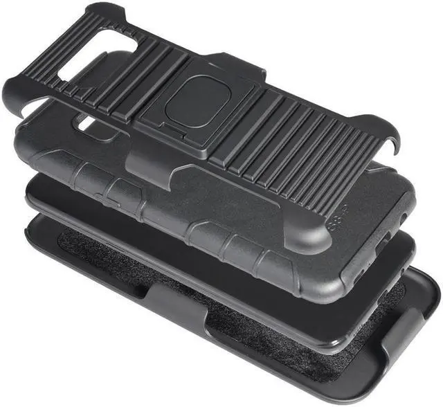 BELT CLIP HOLSTER: The industrial holster was custom made to fit this case. It is made of a hard polycarbonate and it was molded to fit the phone face-inward to protect the lcd screen. Industrial belt clip will turn/lock in 13 different positions. Attach to your side and always have quick access to your phone. The holster also has a kickstand feature so you can prop on a table.