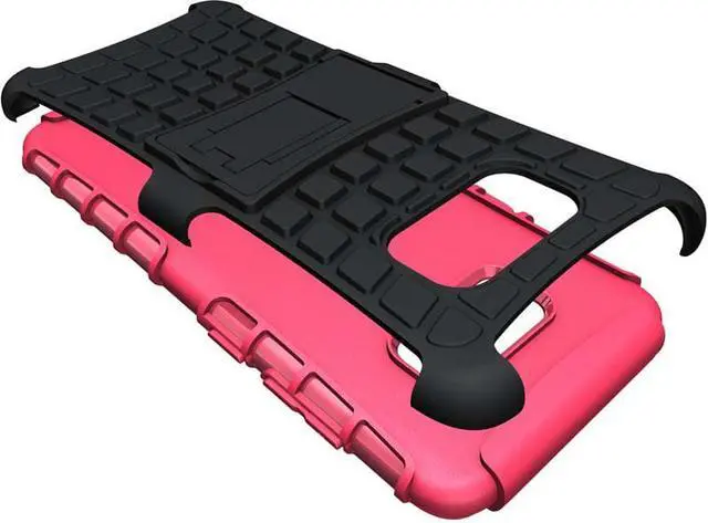 MATERIAL: This is a hybrid case that offers two layers of protection. First wrap the TPU skin around your phone. The TPU material is flexible and fits like a glove. Then the black rubberized hard shell will snap on the back of the skin. The hard shell extends to all four corners of the phone providing excellent impact protection from drops. Your touchscreen is recessed within the case for protection - will not scratch the surface when face-down on a table.