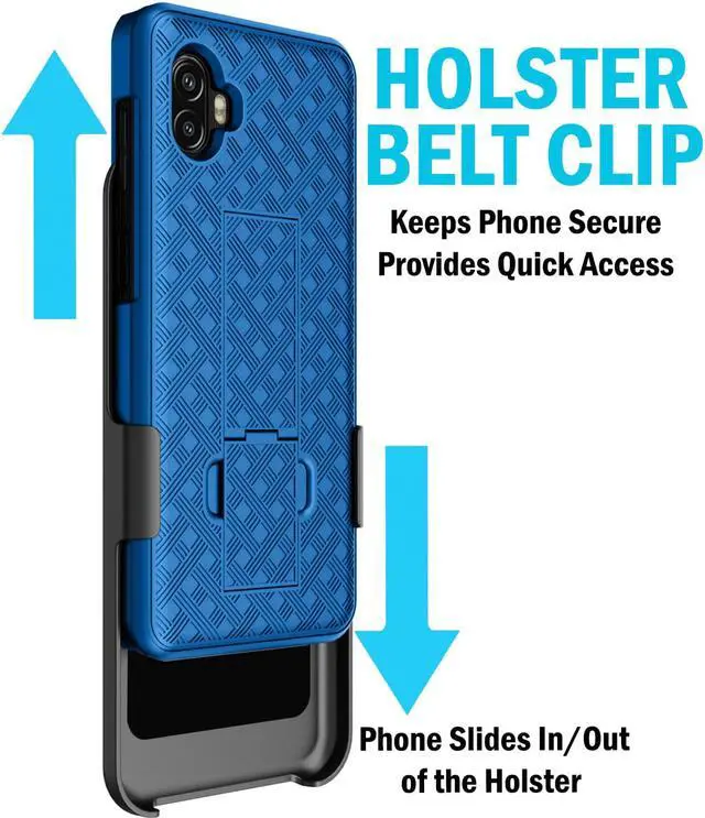 BELT CLIP: Holster is made to fit the phone with cover. Slide your phone in/out of the holster. The interior is lined with soft micro-fiber material to ensure your screen will remain scratch free. The holster is designed to hold the phone "face-inward" so your screen is concealed and protected while on the go. Clip can turn/lock in 13 different positions and has a slim profile so it will not extend far from your waist and bump into things. Attach the clip to your side and always have quick access to your phone - Like an old western, you'll be quick on the draw!
