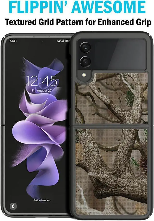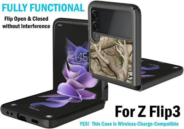 PHONE COVER: The case is composed of two hard shell covers that snap on the rear top/bottom panels. Your Z Flip-3 phone remains fully functional in the case with cutouts to access all buttons, charger, camera, speaker. You can still flip the phone open and closed as normal. The case is made of hard polycarbonate that has been treated with a powder coating for extra durability. Case also has ribbed grid pattern for enhanced tactile grip.