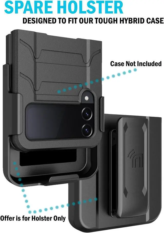 COMPATIBILITY: Please note, this will NOT fit the stock "naked" phone. The holster was made to fit our tough hybrid case. Will this fit other brand Z Flip4 cases? Yes, we have had customers tell us the holster is compatible with other brand cases. Just make sure your case is a similar dual-layer thick case (not intended for very slim covers).