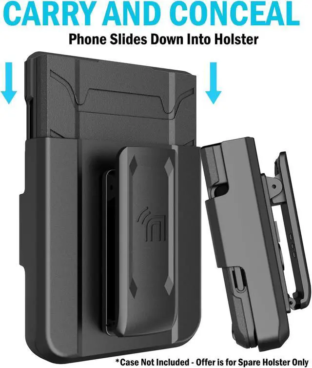 This holster was made specifically to fit our tough hybrid case. No hybrid case is included. This offer is for the spare holster clip only.