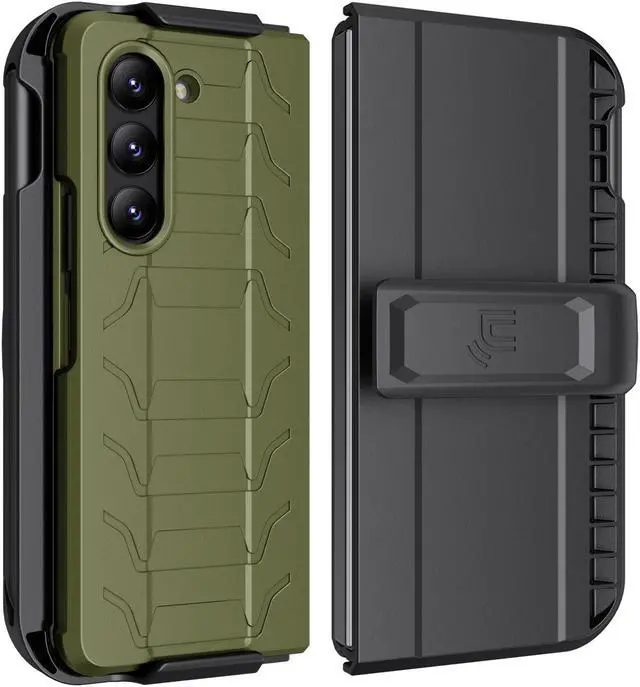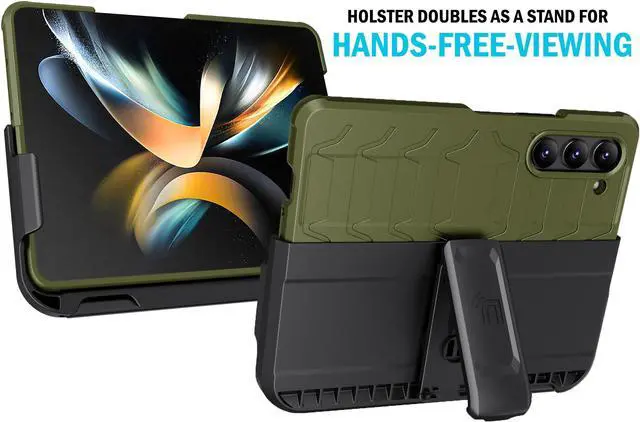 The Tactical Rugged Shield Combination is ready to serve and protect your Galaxy Z Fold 5 phone. This is a case + holster combo. The tough hybrid phone case provides impact protection, shock absorption, enhanced textured grip. Attach the holster clip to your side whenever you desire quick/convenient access.