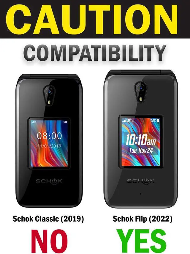 CAUTION: There are 2 different "Schok" flip phones and they look almost identical. This case was made for the 2022 edition. That phone has model number SC3218T or SC3218B and offered by T-Mobile, Boost Mobile, Sprint, Metro. This will not fit the older/smaller 2019 edition.