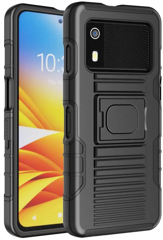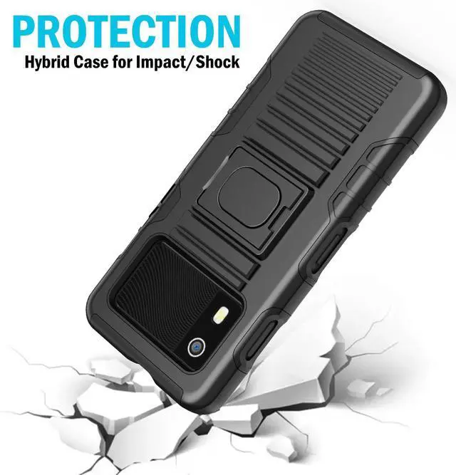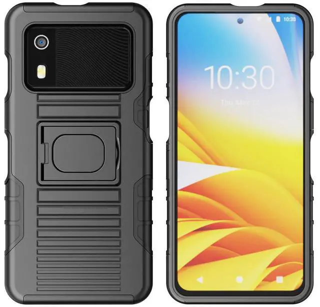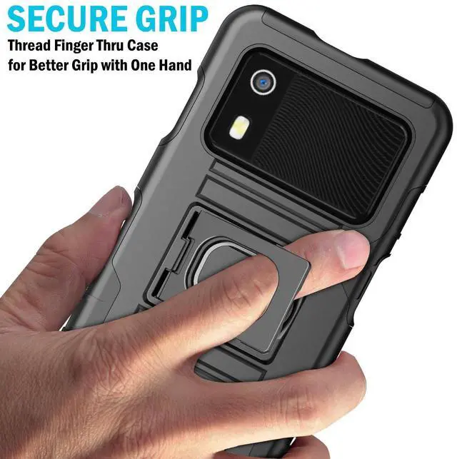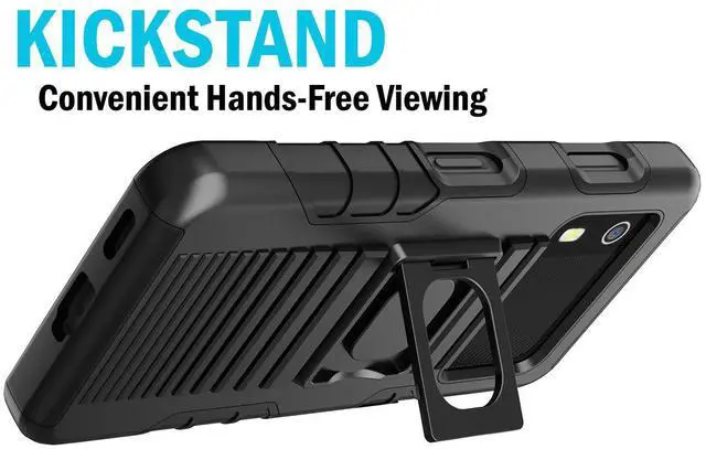 RING STAND: Back of the case features unique kickstand that can also be used as a finger-grip. Thread your finger though the hole and now you'll be able to handle the device better with one hand. No more drops! You'll have a secure grip and now you'll be able to reach all edges of the touchscreen better one-handed. The kickstand allows you to prop your EM45 in horizontal position on a table or desk.