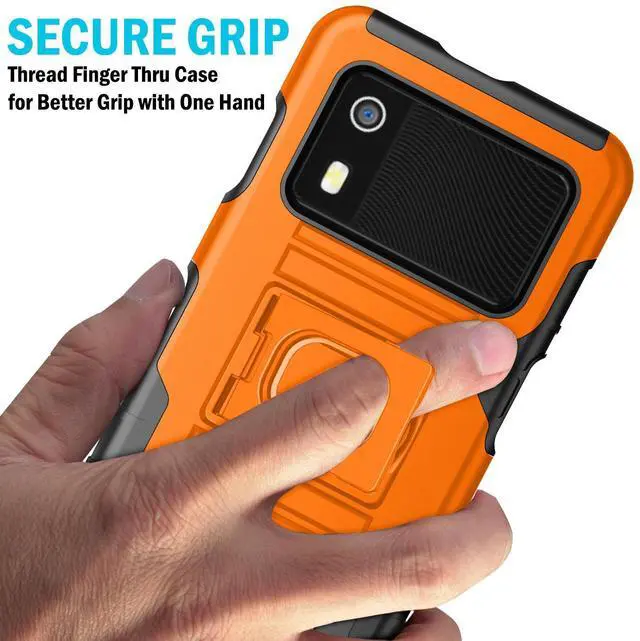 RING STAND: Back of the case features unique kickstand that can also be used as a finger-grip. Thread your finger though the hole and now you'll be able to handle the device better with one hand. No more drops! You'll have a secure grip and now you'll be able to reach all edges of the touchscreen better one-handed. The kickstand allows you to prop your EM45 in horizontal position on a table or desk.