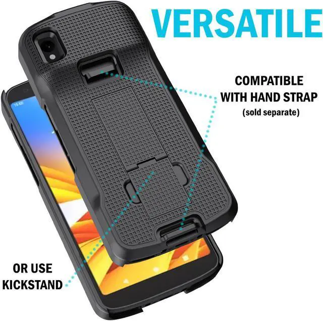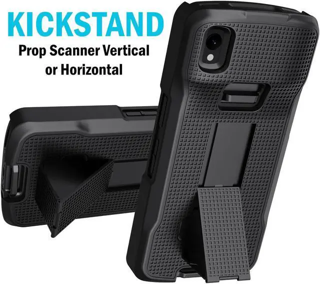 FUNCTIONALITY: Your device is fully functional in the case with cutouts to access all buttons/ports and sensors. Do you use a hand strap with your scanner? Good news! The hard shell cover remains compatible with hand strap. Need a hand strap? We offer them in our store. If you do not use a hand strap then you can utilize the case's kickstand feature. Back of the case features built-in stand. Unsnap the hinge then slide downward until the kickstand snaps into place. Now you can prop your scanner in different positions at your desk or workstation.