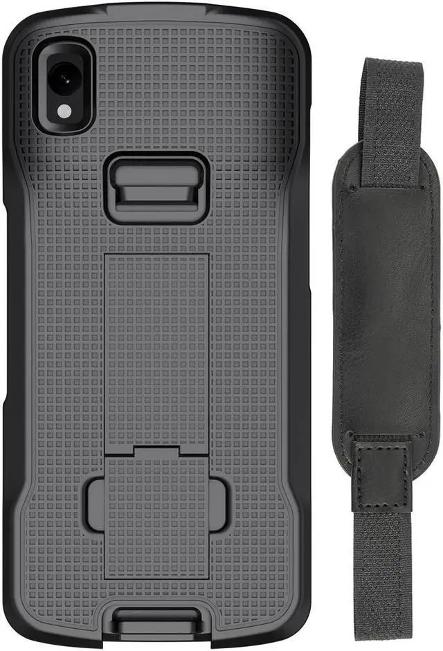 This combination includes one hard case and one hand strap for Zebra TC22/TC27. The KickStand case provides added protection and functions as a hands-free viewing stand. Thread the hand strap thru the corresponding slots on your scanner for secure grip.