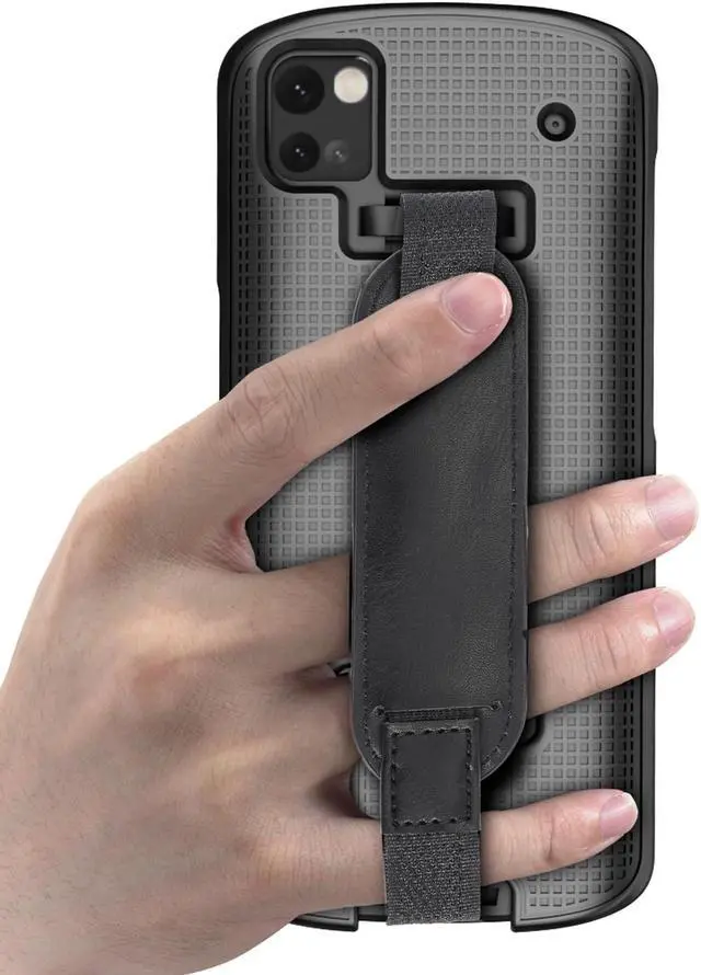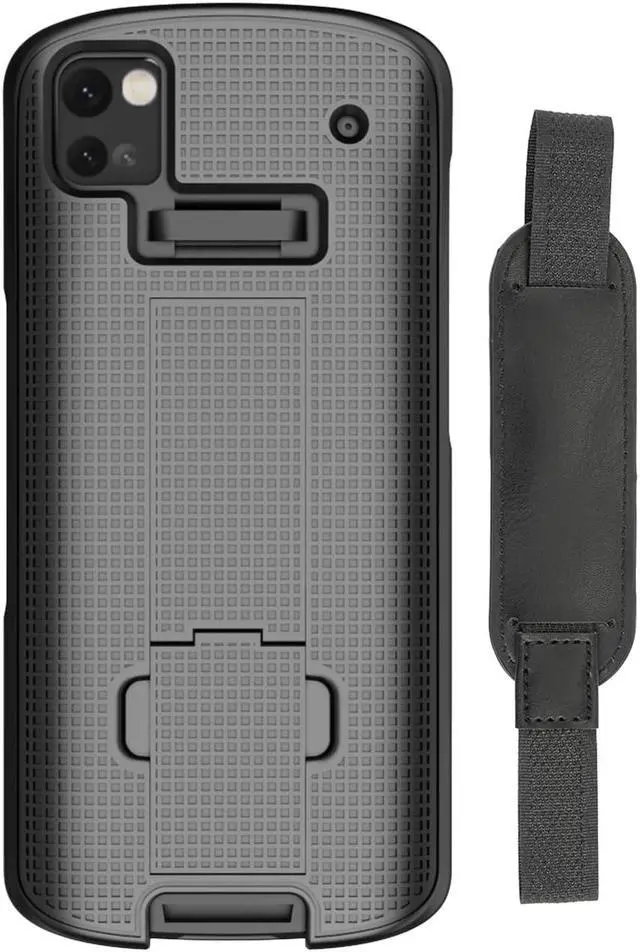 FUNCTIONALITY: Your device is fully functional in the case with cutouts to access all buttons/ports and sensors. If you do not use a hand strap then you can utilize the case's kickstand feature. Back of the case features built-in stand. Unsnap the hinge then slide downward until the kickstand snaps into place. Now you can prop your scanner in different positions at your desk or workstation.