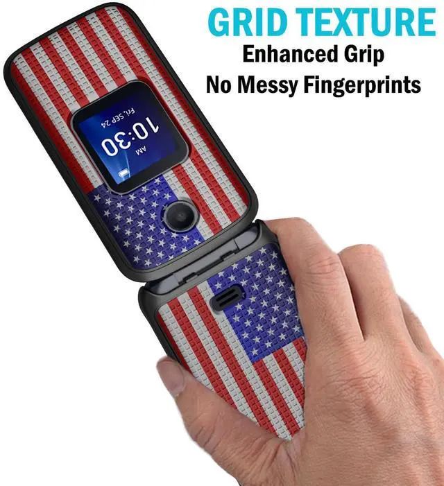 PHONE COVER: The case is composed of two hard shell covers that snap on the rear top/bottom panels. Your phone remains fully functional in the case with cutouts to access all buttons, charger, camera, speaker. You can still flip the phone open and closed as normal. The case is made of hard polycarbonate that has been treated with a powder coating for extra durability. Case also has ribbed grid pattern for enhanced tactile grip.