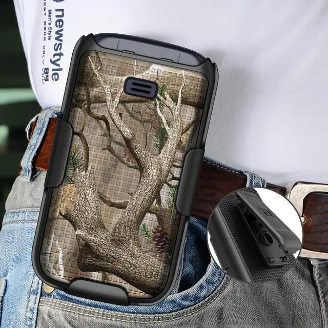 CLOSE RANGE HOLDER: The holster is a holder for the phone so you can keep it secure and accessible at your side. Remove phone from holster to answer call and use the device. Like an old western, you'll be quick on the draw!